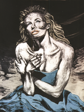 In her 20s, Lisa Marie produced three major successful art shows—showcasing the most famous models in the 90s —an inspiration for an exploration of power, sexuality and in-bridal depth. The medium, gouache and ink (on archive board/canvas) were created through a technique she learned from her teacher in Detroit. (Formally, ACAD’s (Alberta College of Art & Design) mobility program was in Detroit, Michigan, from 1990 to 1991.